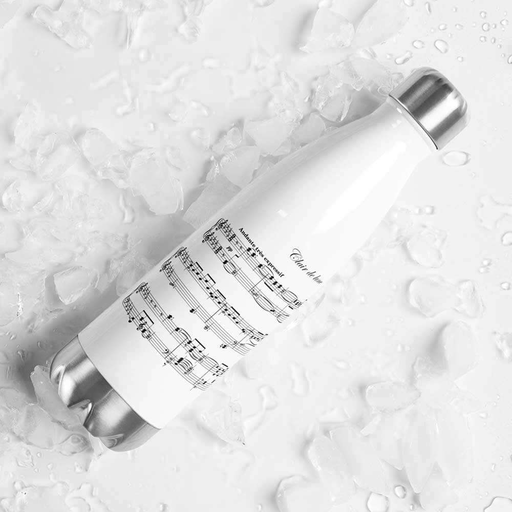 La gourde est conçue pour accompagner vos journées actives : trajet, cours, répétition, balade ou bureau. Elle garde votre boisson dans la température souhaitée. Mais au lieu d’un motif de masse sans signification, votre gourde raconte une histoire, celle d’une pièce de musique qui marque les esprits depuis plus d’un siècle. D’ailleurs, elle est l’une des œuvres pour piano qu’on entend le plus au cinéma ou à la télévision !