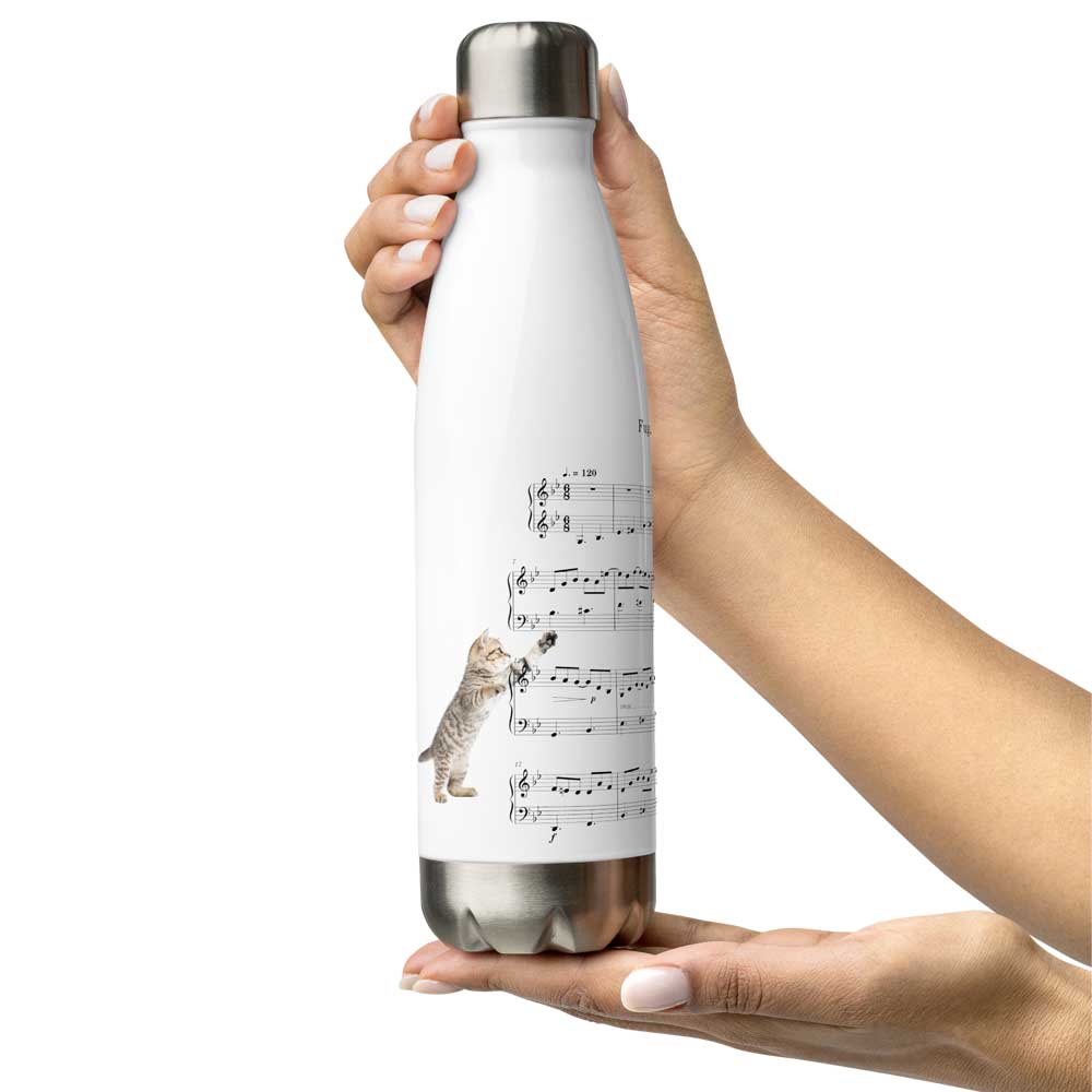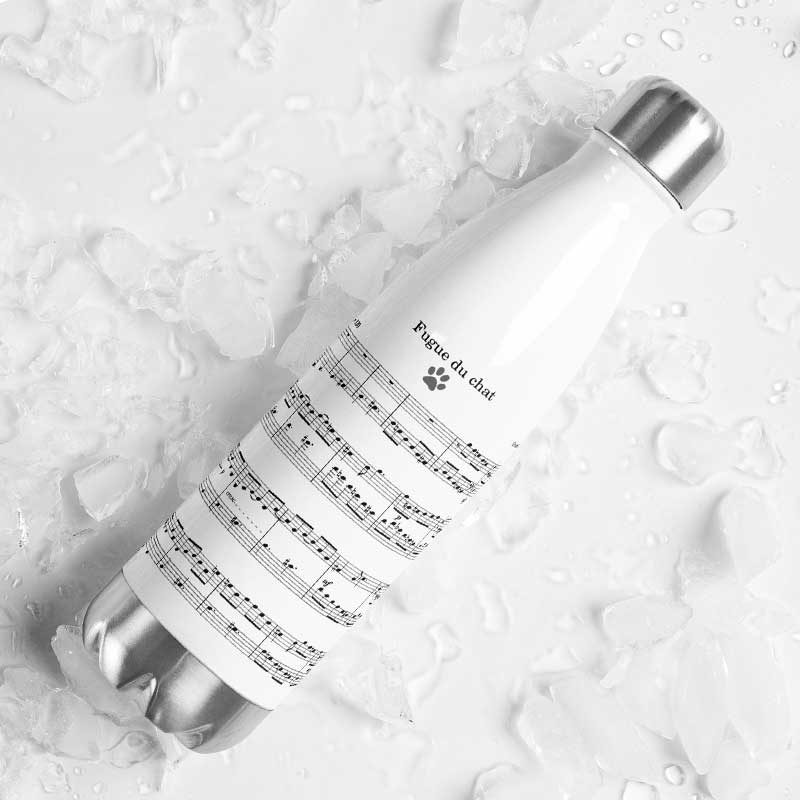 Avis aux pianistes, mélomanes et amoureux des chats. Inspirée par la Fugue du chat de Domenico Scarlatti, elle transforme une simple gourde en objet artistique aussi élégant qu’attachant.