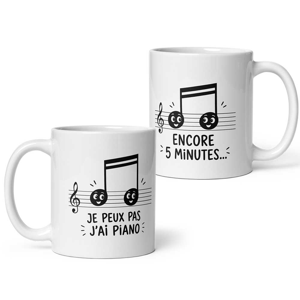 Mug humour à message : « Je peux pas j’ai piano »… »Encore 5 minutes »